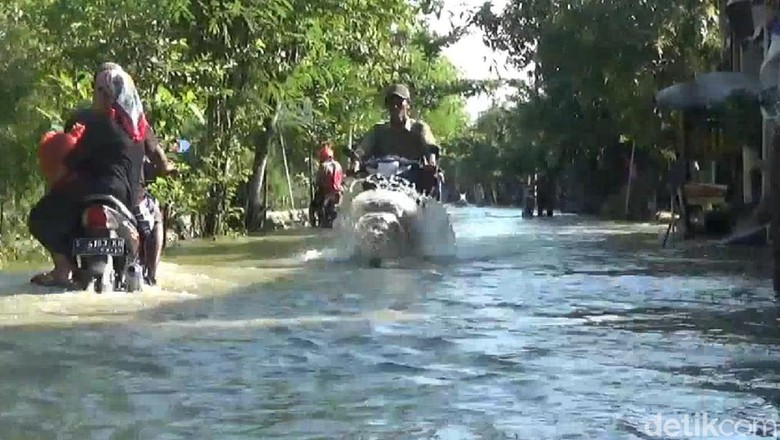 Khoirul yang terpaksa harus mendorong sepeda motornya alasannya ialah mogok mengaku, jalan poros kecamatan yang terendam itu sepanjang lebih kurang 4 km. Mulai dari Desa Kemlagi Lor, Kecamatan Turi sampai ke Desa Tiwet, Kecamatan Kalitengah.