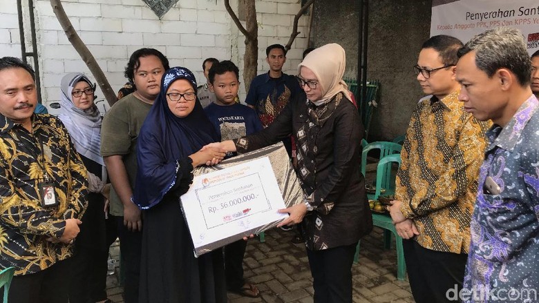 (Foto: Rolando/detikcom)Jakarta -KPU memperlihatkan santunan kepada keluarga anggota KPPS yang meninggal dunia seusai Pemilu 2019. Santunan diserahkan sebagai bentuk sambung rasa kepada keluarga petugas KPPS.