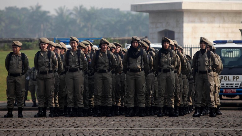 Ilustrasi/Apel Satpol PP (Agung Pambudhy/detikcom)Jakarta -Satpol PP DKI Jakarta menggandeng polisi untuk mengawasi daerah hiburan selama Ramadan. Satpol PP DKI Jakarta sudah memasang stiker di setiap daerah hiburan untuk menyosialisasi hukum jam buka daerah hiburan.