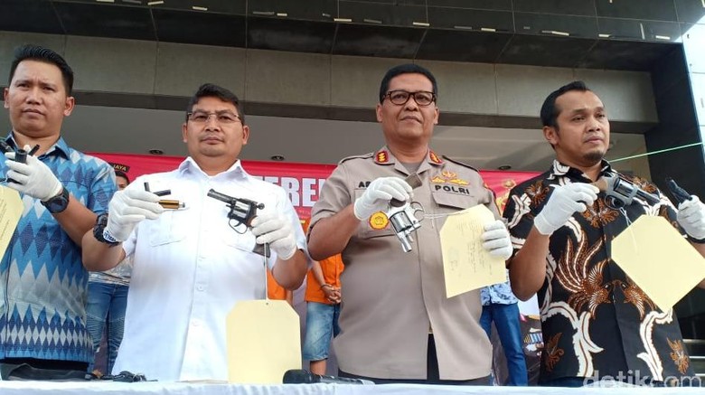 "Tersangka U dan AS ini setiap ia berjalan ia bawa senpi ini. Kaprikornus kalau ia tertangkap tangan nanti ia akan melukai atau mengancam. Tersangka 3 orang ini kelompok dari Lampung ada yang sudah menetap di tempat Tangerang," ungkap Argo.