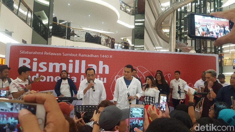 Sejumlah relawan Jokowi-Ma'ruf Amin berkumpul di FX Sudirman, Jumat (3/5/2019) Foto: Zunita Amalia Putri/detikcomJakarta -Sejumlah relawan Jokowi-Ma'ruf Amin berkumpul di FX Sudirman. Menteri Perhubungan Budi Karya Sumadi dan Wakil Ketua TKN Abdul Kadir Karding hadir dan menghibur para relawan.